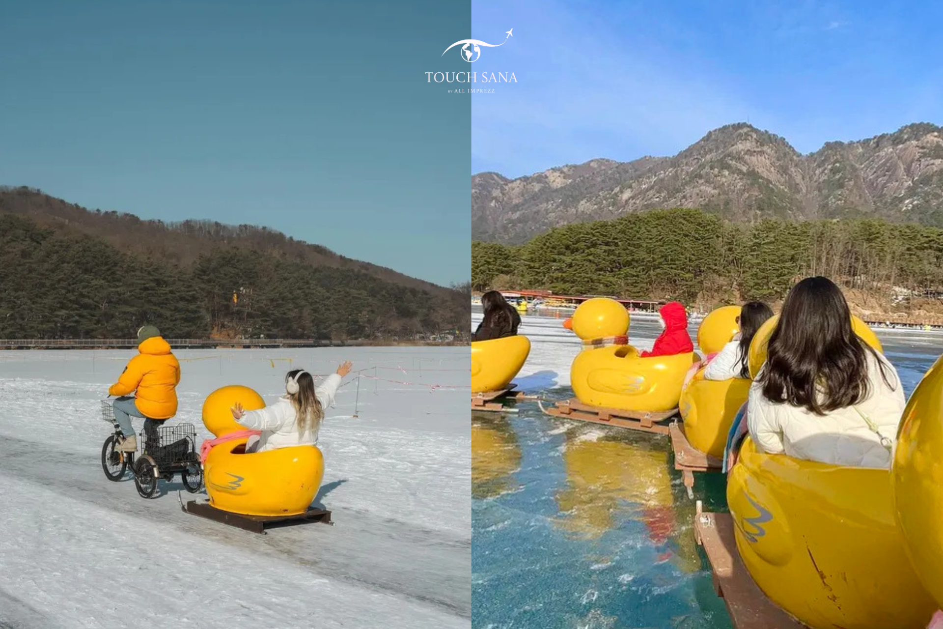 - Sanjeong lake sledding festival เทศกาลหิมะริมทะเลสาบซันจอง สนุกกับกิจกรรมเลื่อนหิมะพร้อมตุ๊กตาเป็ดเหลืองน่ารัก มอบประสบการณ์ฤดูหนาวแบบสนุกสนานสำหรับทุกวัย